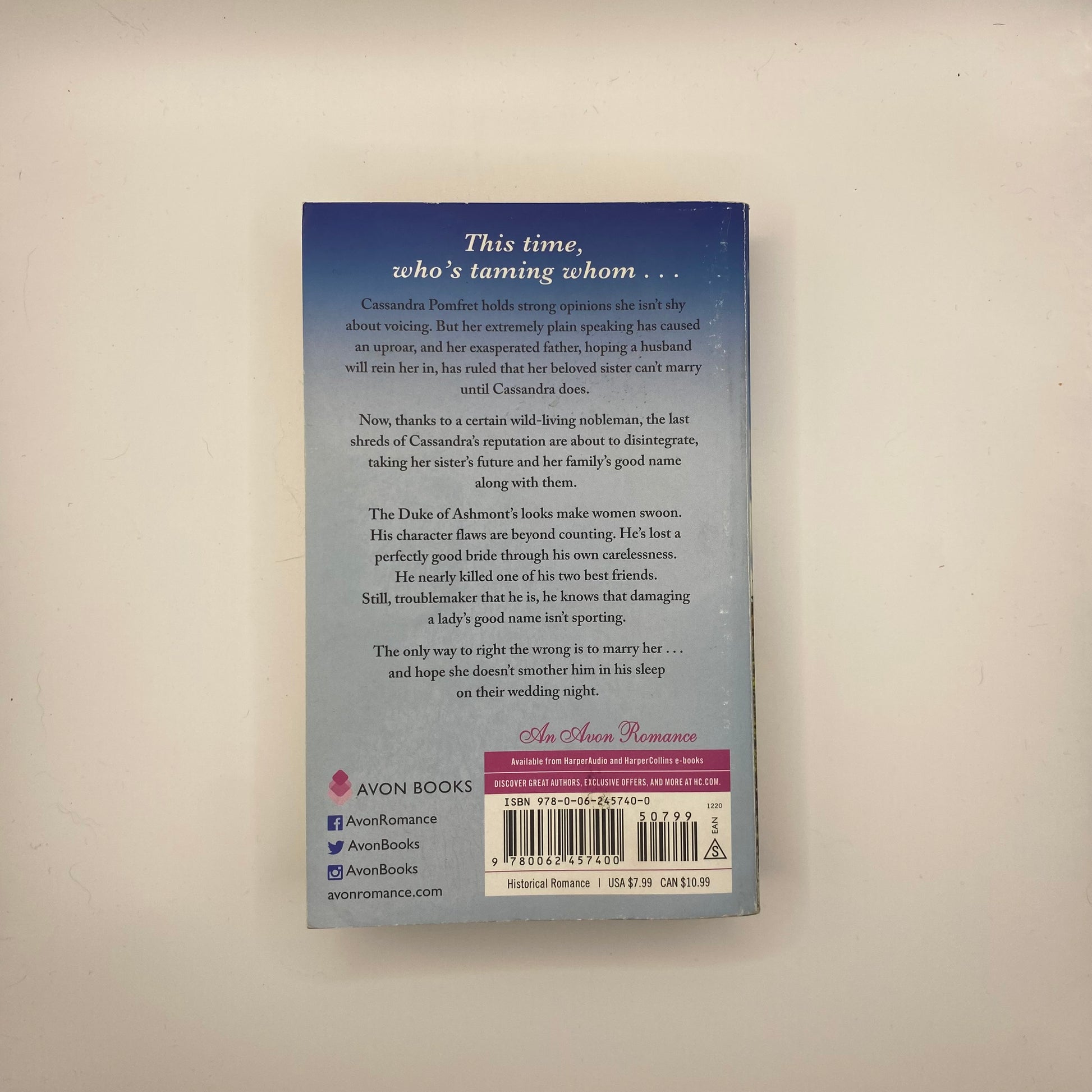 The Duke of Ashmont’s looks make women swoon. His character flaws are beyond counting. He’s lost a perfectly good bride through his own carelessness. He nearly killed one of his two best friends. Still, troublemaker that he is, he knows that damaging a lady’s good name isn’t sporting.