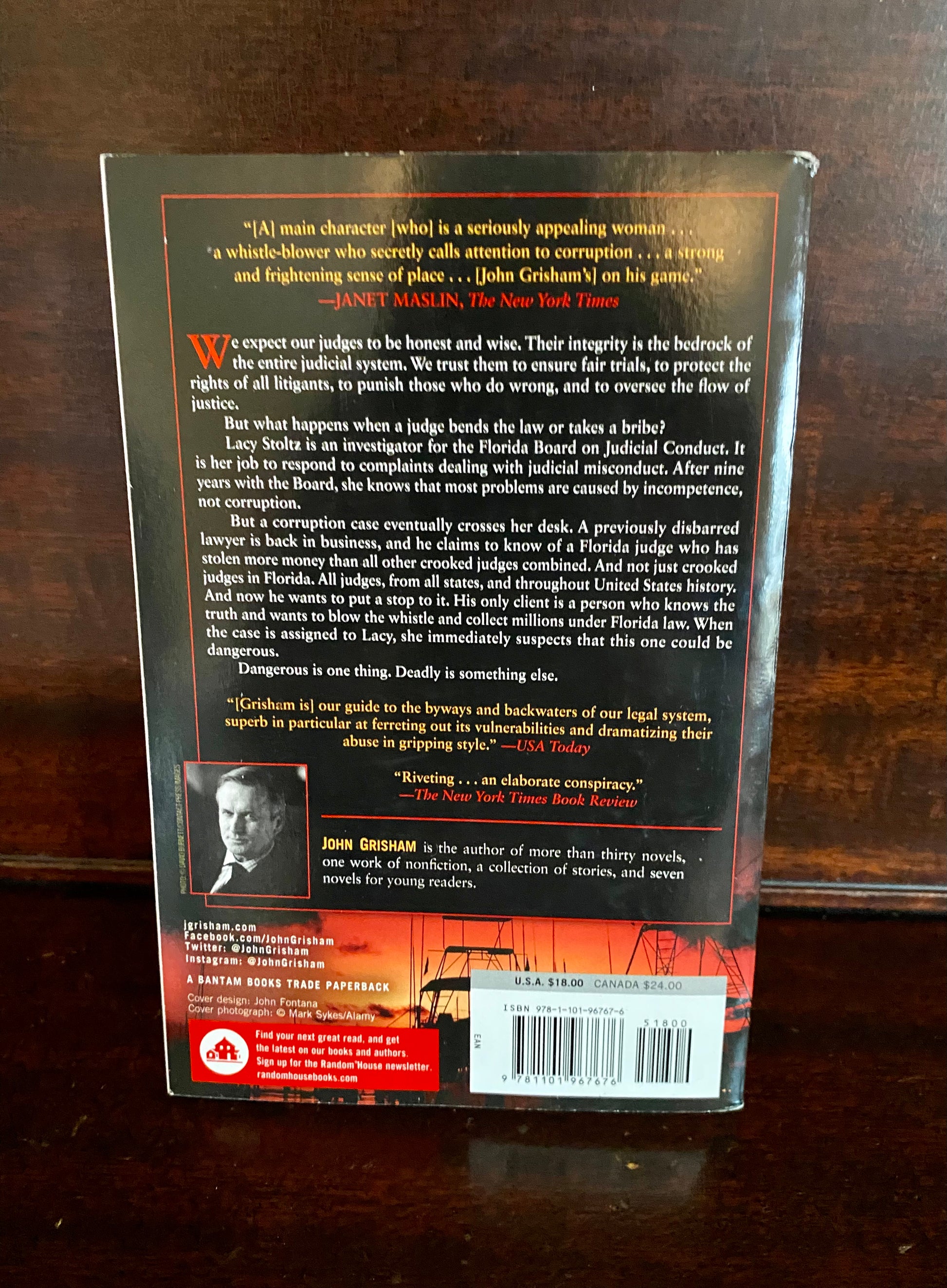 But now Greg wants to put a stop to it. His only client is a person who knows the truth and wants to blow the whistle and collect millions under Florida law. Greg files a complaint with the Board on Judicial Conduct, and the case is assigned to Lacy Stoltz, who immediately suspects that this one could be dangerous.